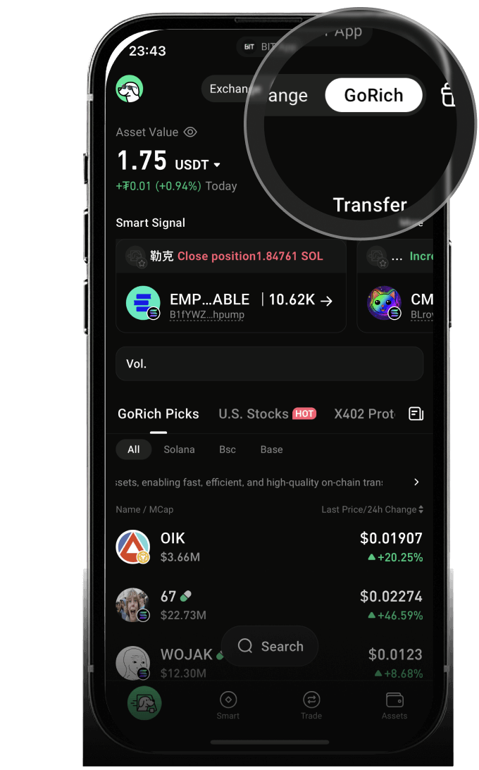 GoRich Top Picks is a curated selection of high-potential, trending tokens identified by the GoRich professional team as second-wave opportunities with strong certainty. Unlike first-wave tokens with rapid PVP (player vs. player) dynamics or older tokens with low volatility, Top Picks combine high certainty and significant profit potential. Selections are based on:Narrative analysisMarket cap expectationsSmart money and whale chip analysisK-line technical analysis This rigorous research ensures reliable trading opportunities with maximized profitability.